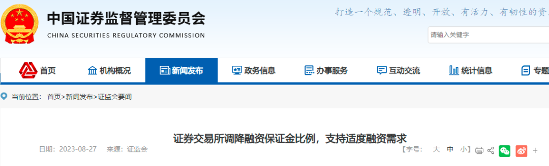 為落實(shí)證監(jiān)會(huì)近期發(fā)布的活躍資本市場、提振投資者信心的一攬子政策安排,促進(jìn)融資融券業(yè)務(wù)功能發(fā)揮,更好滿足投資者合理交易需求,經(jīng)中國證監(jiān)會(huì)批準(zhǔn),上交所、深交所、北交所發(fā)布通知,修訂《融資融券交易實(shí)施細(xì)則》,將投資者融資買入證券時(shí)的融資保證金最低比例由100%降低至80%。此調(diào)整將自2023年9月8日收市后實(shí)施。