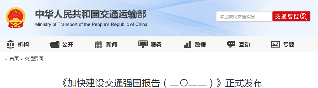 核心提示:近日,交通運輸部發(fā)布《加快建設(shè)交通強國報告(2022)》(簡稱《報告》),這是黨的十九大報告提出建設(shè)交通強國以來,交通運輸