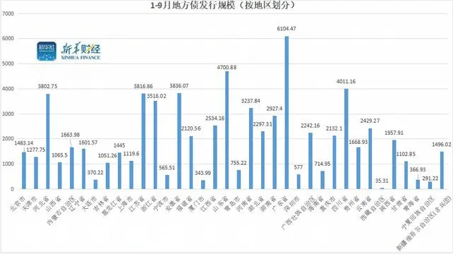 據(jù)新華財(cái)經(jīng)統(tǒng)計(jì),1-9月全國(guó)地方債共發(fā)行70662.87億元,包括新增一般債6482.11億元、新增專項(xiàng)債34486.51億元,再融資一般債15974.35億元、再融資專項(xiàng)債13719.9億元。按地區(qū)劃分,廣東省、山東省和四川省發(fā)行量位居前三,分別為6104.47億元、4700.88億元和4011.16億元。