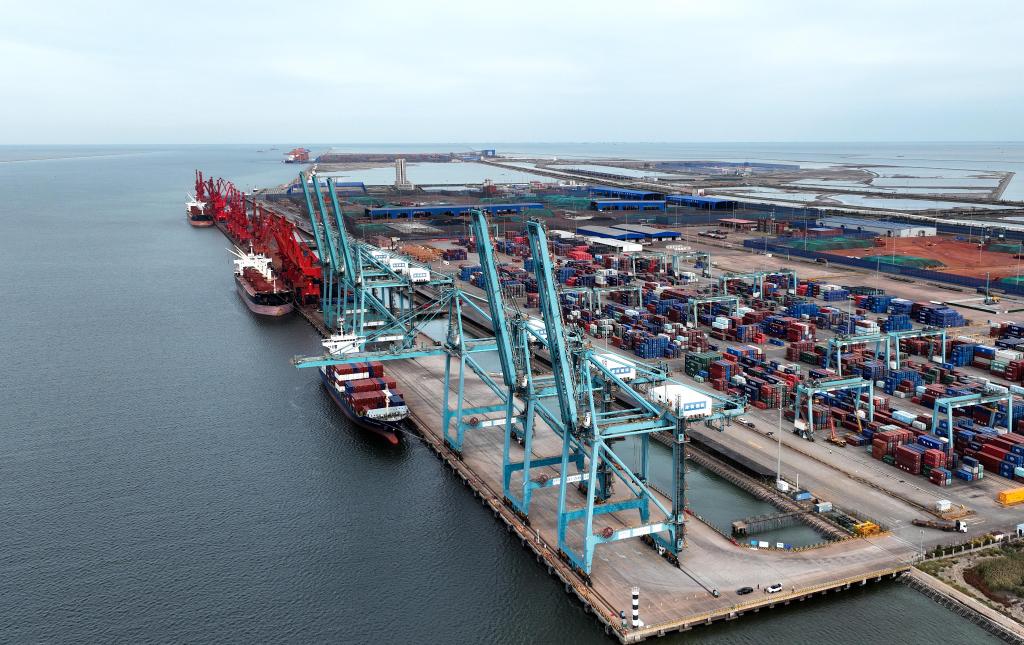 船舶??吭邳S驊港綜合港區(qū)碼頭(2023年10月19日攝,無人機照片)。新華社記者 駱學(xué)峰 攝