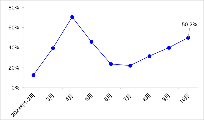 10月,完成營(yíng)業(yè)性貨運(yùn)量48.3億噸,同比增長(zhǎng)11.6%。其中,完成公路貨運(yùn)量35.5億噸,同比增長(zhǎng)12.7%;完成水路貨運(yùn)量8.4億噸,同比增長(zhǎng)11.1%。