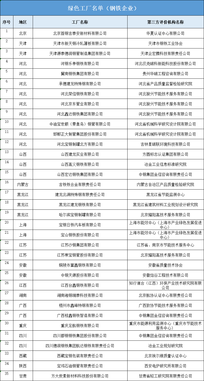 其中,據(jù)不完全統(tǒng)計,35家鋼鐵相關(guān)企業(yè)上榜綠色工廠名單。