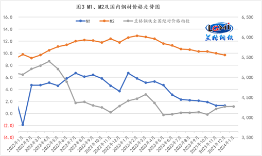 2023年,工業(yè)生產(chǎn)者出廠價(jià)格比上年下降3.0%,工業(yè)生產(chǎn)者購(gòu)進(jìn)價(jià)格下降3.6%,均由上年的上漲轉(zhuǎn)為下降。對(duì)于國(guó)內(nèi)制造企業(yè)來(lái)說(shuō),2023年由于受到國(guó)內(nèi)有效需求持續(xù)不足以及企業(yè)效益改善有限的共同影響,致使制造企業(yè)生產(chǎn)活動(dòng)釋放意愿不足,從而制約了制造用鋼需求的釋放力度。