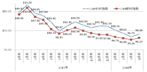 CSPI國內(nèi)長材和板材價(jià)格指數(shù)走勢圖