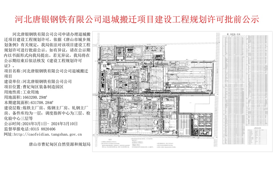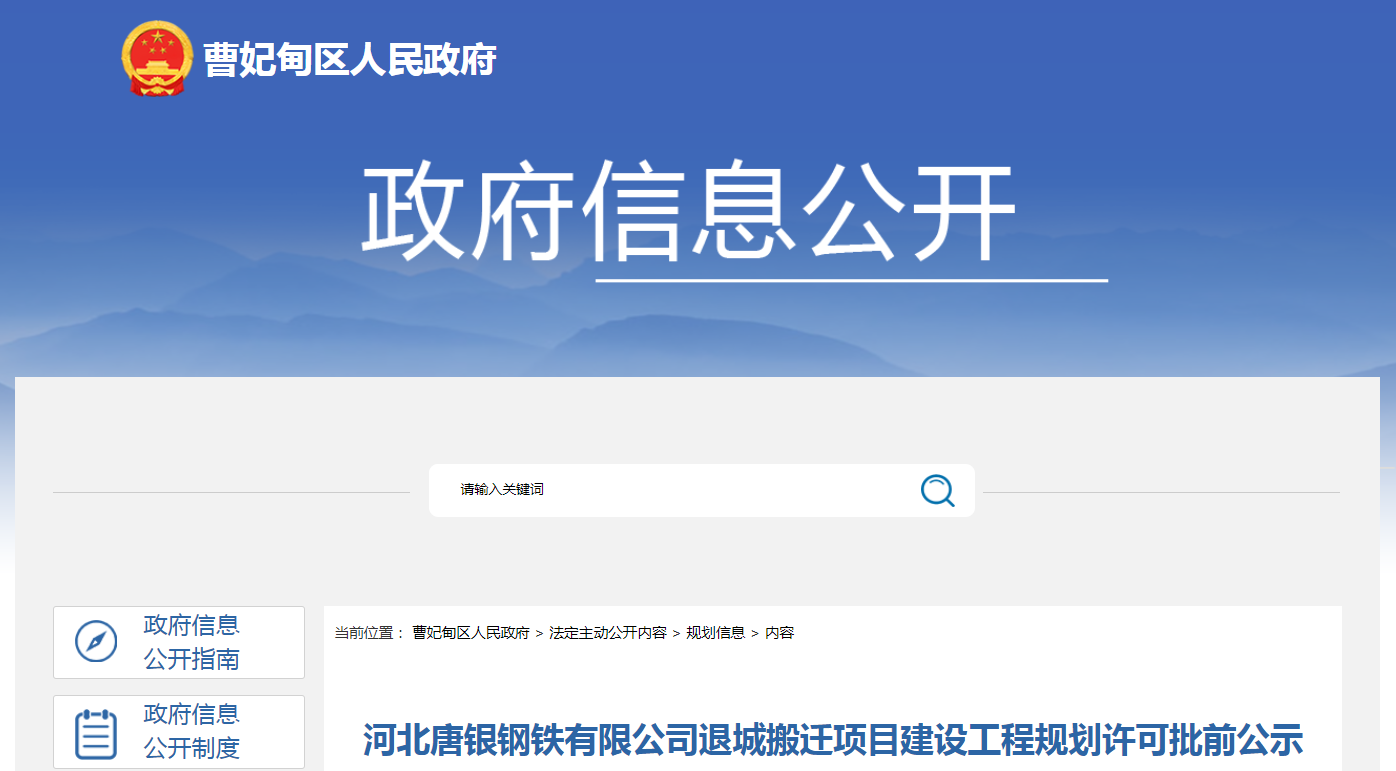 唐山市曹妃甸區(qū)人民政府公示河北唐銀鋼鐵退城搬遷項(xiàng)目