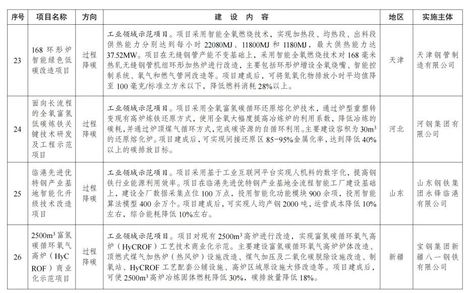 鋼鐵相關(guān)過(guò)程減碳項(xiàng)目: