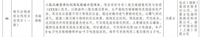 鋼鐵相關(guān)末端減碳項(xiàng)目: