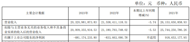 凌鋼股份公布2023年年度報(bào)告,報(bào)告期實(shí)現(xiàn)營(yíng)業(yè)收入203.21億元,同比下降5.74%;歸屬于上市公司股東的凈利潤(rùn)-6.81億元;基本每股收益-0.24元。