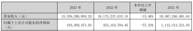 核心提示:沙鋼股份發(fā)布年度業(yè)績報(bào)告稱,2023年?duì)I業(yè)收入約153.59億元,同比下降15.48%;歸屬于上市公司股東的凈利潤約1.93億元,同比下降57