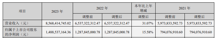 久立特材發(fā)布2023年年度報(bào)告,報(bào)告期內(nèi)公司實(shí)現(xiàn)營(yíng)業(yè)收入85.68億元,同比增長(zhǎng)31.07%;歸屬于上市公司股東的凈利潤(rùn)14.89億元,同比增長(zhǎng)15.58%。