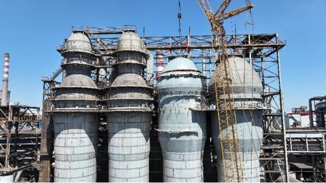 安鋼4747m³高爐配置4座小帽子頂燃式熱風(fēng)爐,由于熱風(fēng)爐風(fēng)溫低、煤氣消耗高、爐殼頻繁開裂,存在低效及安全隱患,2023年安鋼集團(tuán)確定在線陸續(xù)實(shí)施切割爐殼改造為自主擁有的豫興懸鏈線頂燃式熱風(fēng)爐技術(shù),改造總工期400天。