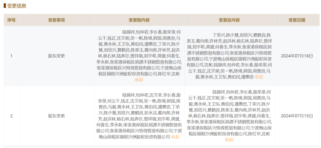 據(jù)國家企業(yè)信用信息公示系統(tǒng)(江蘇)一地方頻道顯示,2024年7月15日、7月16日,江蘇沙鋼集團(tuán)有限公司發(fā)生了兩次股東變更。具體情況如下: