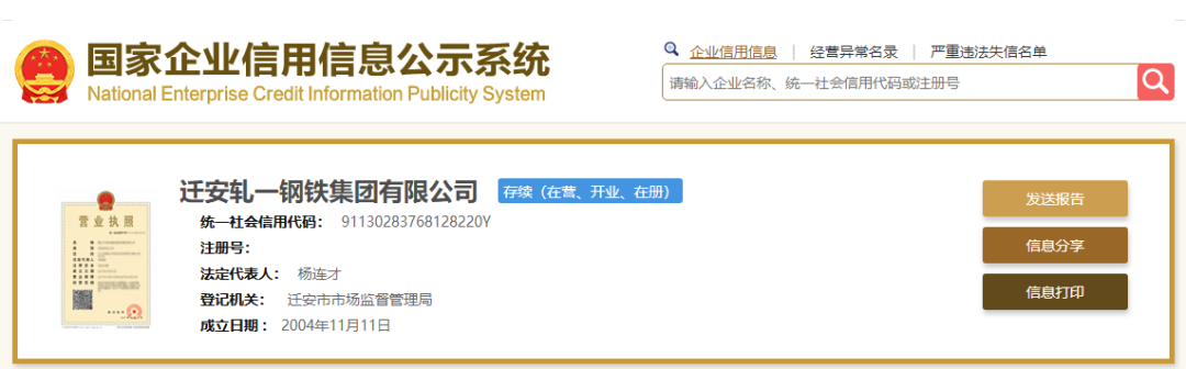 近日,據(jù)國(guó)家企業(yè)信用信息公示系統(tǒng)顯示,遷安軋一鋼鐵集團(tuán)有限公司(簡(jiǎn)稱軋一鋼鐵)近期發(fā)生重大工商變更。詳情如下: