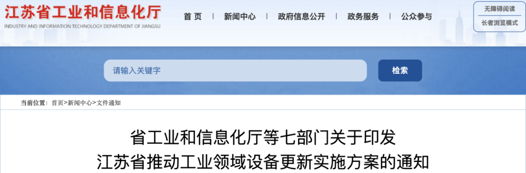 《江蘇省推動工業(yè)領域設備更新實施方案》