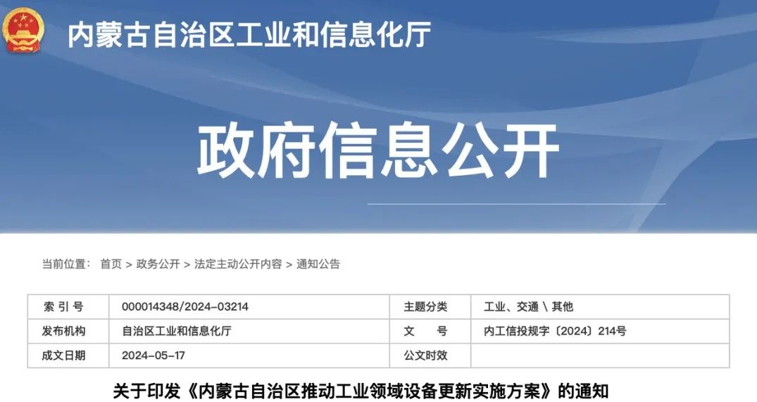 《內(nèi)蒙古自治區(qū)推動工業(yè)領域設備更新實施方案》