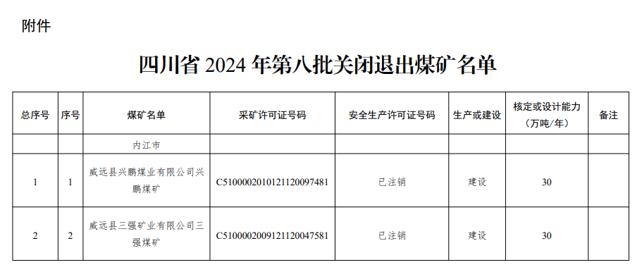 附件:四川省2024年第八批關(guān)閉退出煤礦名單