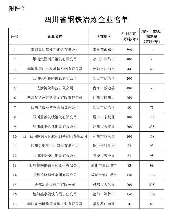 2.四川省鋼鐵冶煉企業(yè)名單