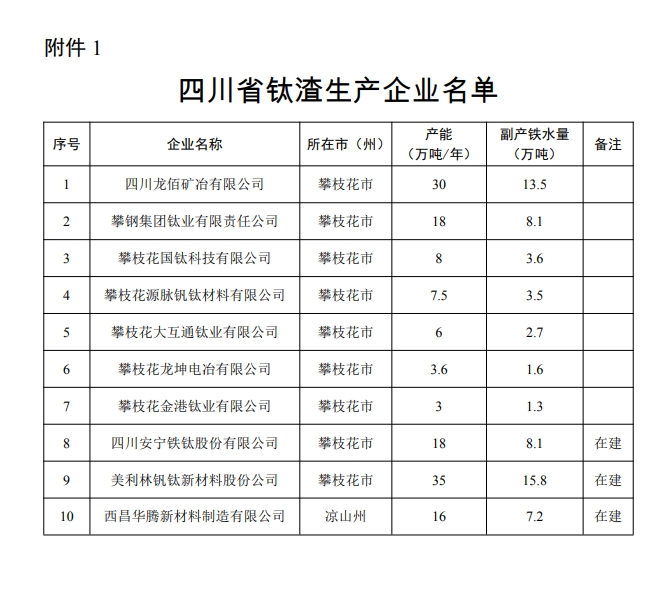 附件:1.四川省鈦渣生產(chǎn)企業(yè)名單