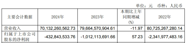 4月28日,柳鋼股份公告,2024年營業(yè)收入701.32億元,同比減少11.97%;歸屬于上市公司股東的凈利潤虧損4.33億元,上年同期凈虧損10.12億元。