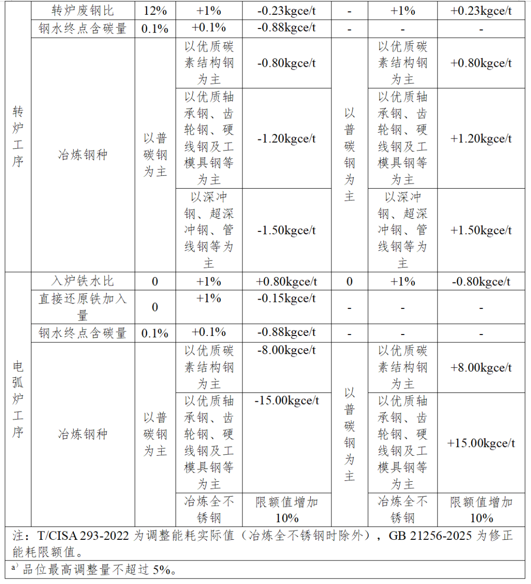 2025版充分采納了T/CISA 293-2022的技術(shù)要求,結(jié)合鋼鐵工業(yè)極致能效工程推進(jìn)過(guò)程中的實(shí)際問(wèn)題,對(duì)鋼鐵原料品質(zhì)變化、鋼產(chǎn)品質(zhì)量升級(jí)等導(dǎo)致能耗增加的客觀因素進(jìn)行了修正,詳見(jiàn)附表。