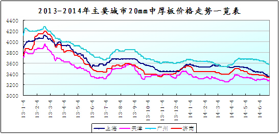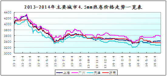 6、主導(dǎo)鋼廠價格穩(wěn)中有降。寶鋼、首鋼武鋼、鞍鋼7月份價格維持平穩(wěn),河鋼下調(diào)7月份熱卷、中厚板價格100元/噸。在市場季節(jié)性需求疲軟、資金面偏緊等因素下,平盤鋼廠也通過暗降、優(yōu)惠幅度加大等來吸引訂單。
