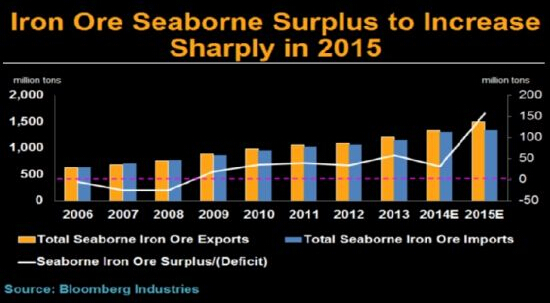 2015年全球海運(yùn)出口鐵礦石數(shù)量將遠(yuǎn)超進(jìn)口數(shù)量