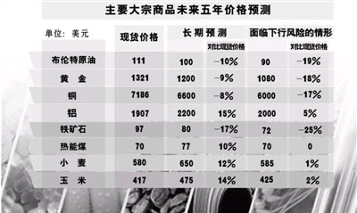 除鐵礦石、銅和原油以外,高盛的這份報告對黃金等大宗商品價格也持看空態(tài)度。而今年6月份德意志銀行也表示,未來幾年,大宗商品的價格將持續(xù)走低。美國花旗集團去年4月也認為,對大宗商品超級周期而言,“死亡之鐘即將敲響”。