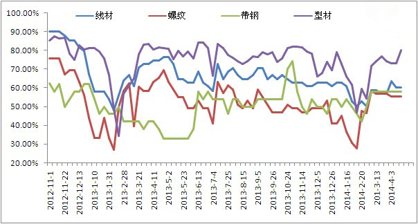 圖4唐山地區(qū)成品材企業(yè)開工率走勢圖