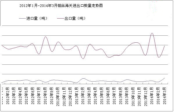 一,2014年3月國內(nèi)鉬絲進(jìn)口量增加,出口量增加