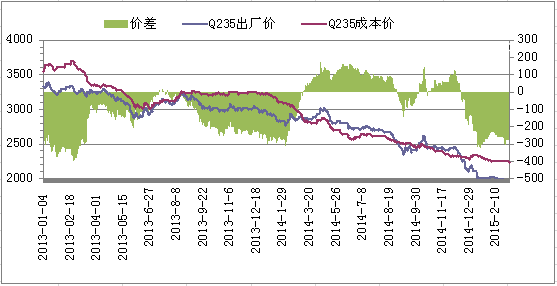 圖2 唐山鋼坯成本與市場價(jià)對比圖 來源: