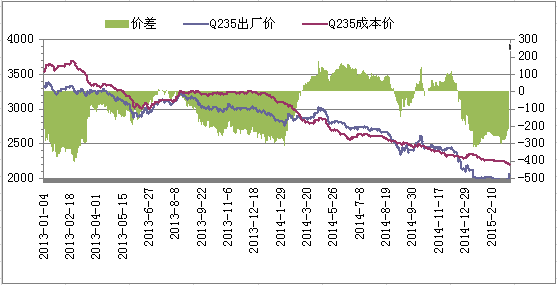 圖2 唐山鋼坯成本與市場價對比圖