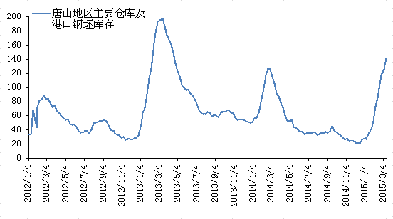 圖3 唐山地區(qū)主要倉庫及港口鋼坯庫存走勢圖