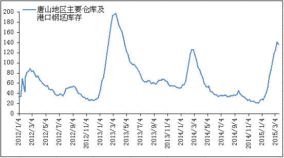 圖3 唐山地區(qū)主要倉(cāng)庫(kù)及港口鋼坯庫(kù)存走勢(shì)圖