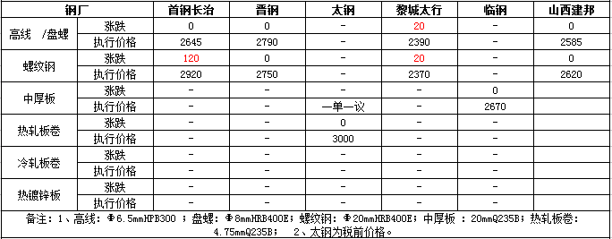 表3:山西省部分主導鋼廠調(diào)價情況匯總表