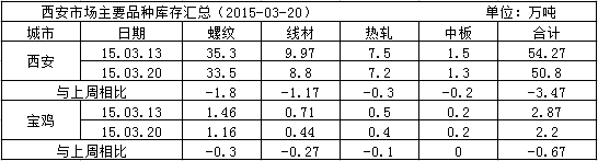 本周陜西主要市場各品種總體庫存小幅下降,具體情況如下: