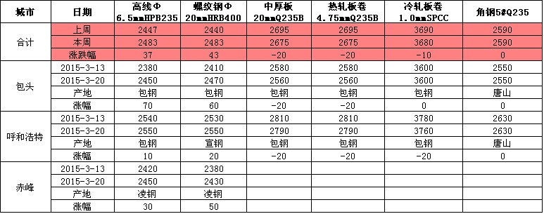 從表上的統(tǒng)計(jì)數(shù)據(jù)看出,本周本地市場(chǎng)鋼材價(jià)格走勢(shì)漲跌互現(xiàn)。建材方面:近期受鋼坯反彈影響,天津、北京等主導(dǎo)市場(chǎng)建材大幅拉漲影響,加之本周本地成交尚可,所以商家報(bào)價(jià)均小幅上漲。赤峰地區(qū)價(jià)格隨北京、天津等主導(dǎo)市場(chǎng)價(jià)格上漲而跟漲,遠(yuǎn)聯(lián)線材價(jià)格主流平穩(wěn);板材價(jià)格下跌20元/噸左右;型材價(jià)格受鋼坯價(jià)格盤整影響走勢(shì)平穩(wěn)為主,目前本地成交十分清淡,另外商家?guī)齑孑^小壓力也不大。