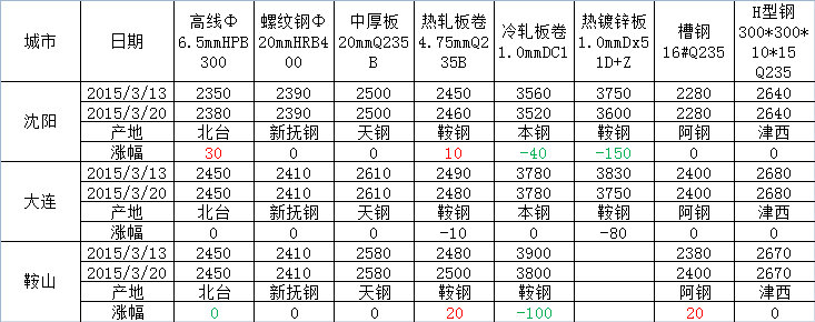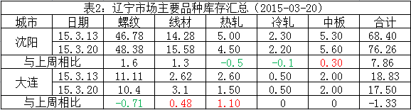 表2:遼寧市場主要品種庫存匯總(2015-03-20)