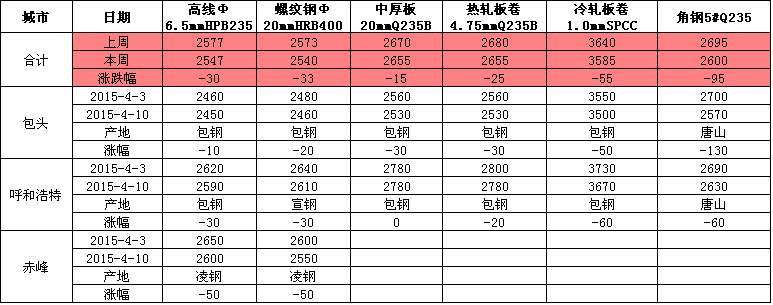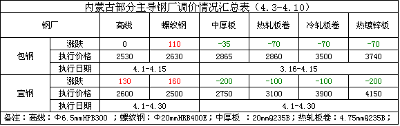 內(nèi)蒙古鋼市一周評述(4.3-4.10)