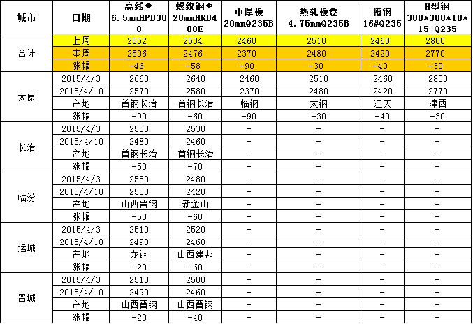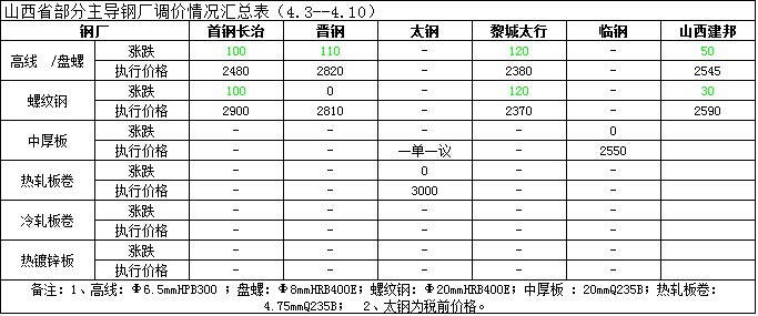 表3:山西省部分主導(dǎo)鋼廠調(diào)價(jià)情況匯總表
