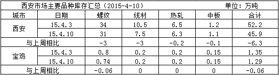本周陜西主要市場各品種總體庫存小幅下跌,具體情況如下: