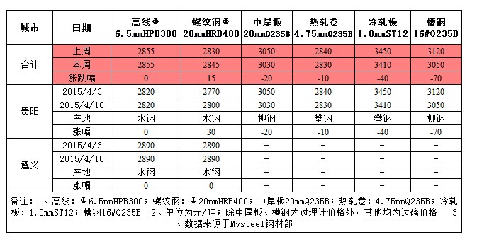 貴州鋼市一周評(píng)述(4.3-4.10)