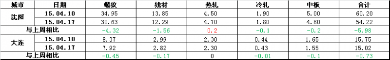 表2:遼寧市場主要品種庫存匯總(2015-04-17)