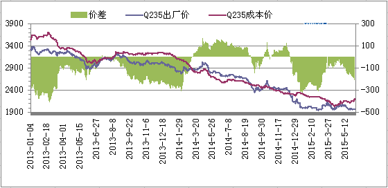 圖2  唐山鋼坯成本與市場價(jià)對(duì)比圖