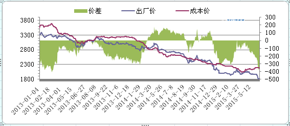 圖2唐山鋼坯成本與市場價(jià)對(duì)比圖