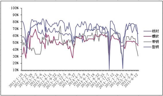 圖4唐山地區(qū)成品材企業(yè)開工率走勢(shì)圖