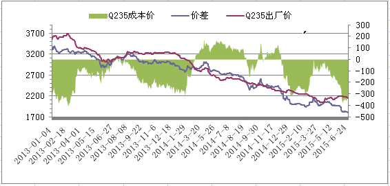 截至7月3日唐山地區(qū)鋼坯測算成本價為2148元/噸,出廠價為1800元/噸。出廠價格與測算成本之間差價-348元,近期鐵礦石價格持續(xù)堅挺,鋼坯出廠價格較低,鋼廠倒掛嚴(yán)重。