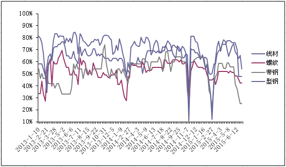 圖4唐山地區(qū)成品材企業(yè)開工率走勢圖