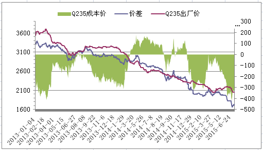 圖2唐山鋼坯成本與市場價對比圖