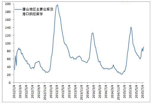 圖3唐山地區(qū)主要倉庫及港口鋼坯庫存走勢圖
