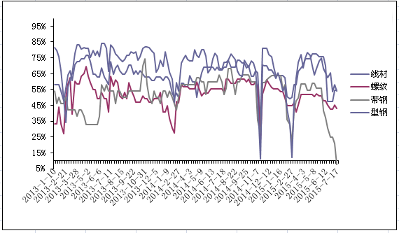 圖4唐山地區(qū)成品材企業(yè)開工率走勢圖